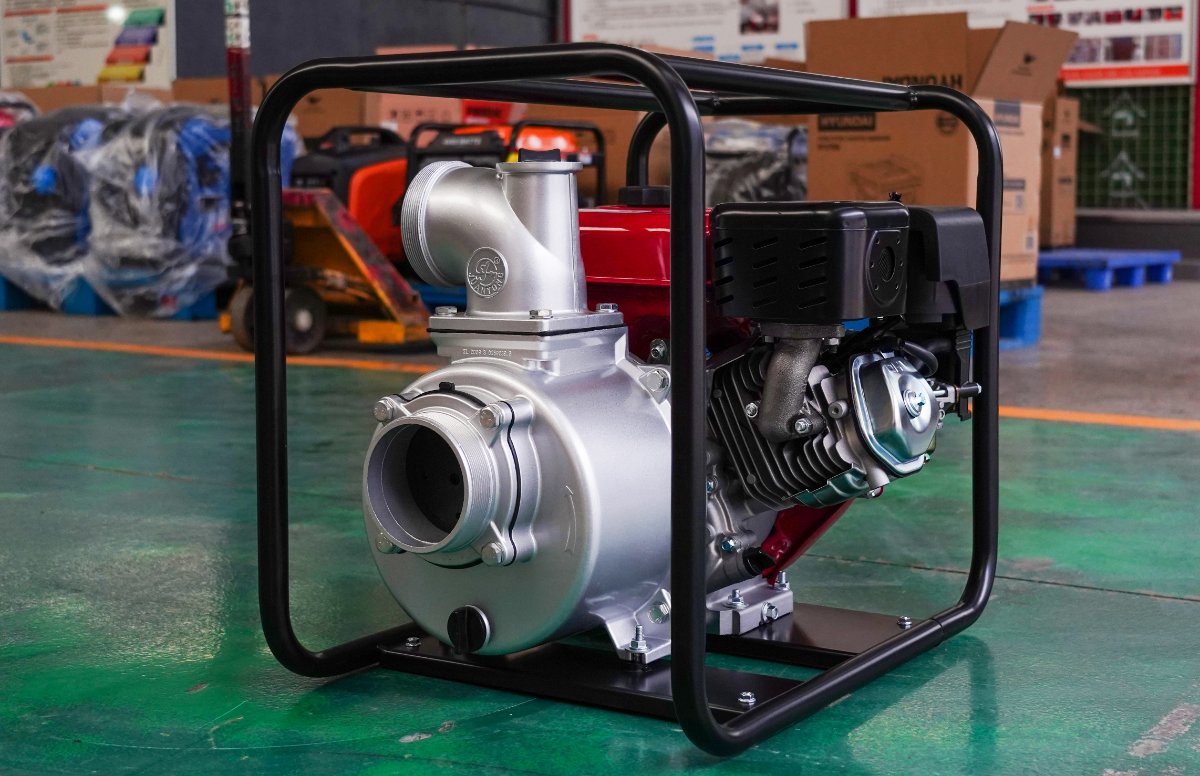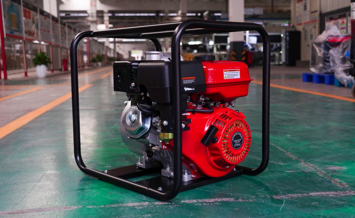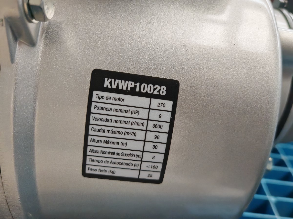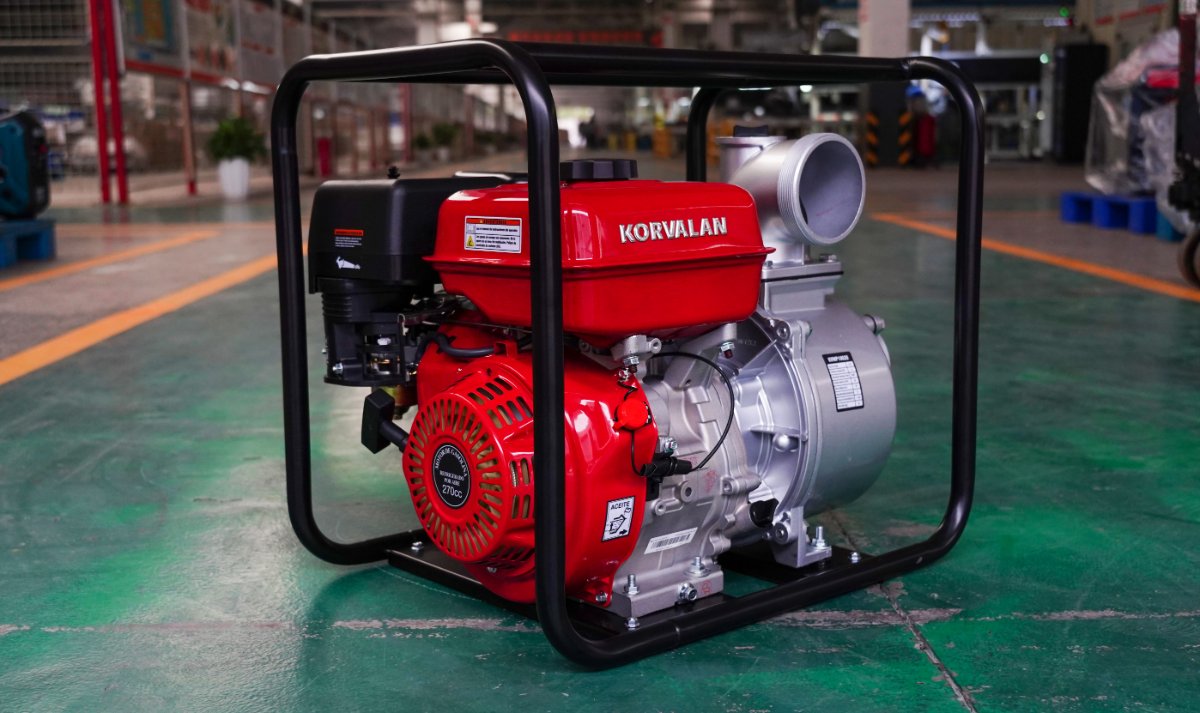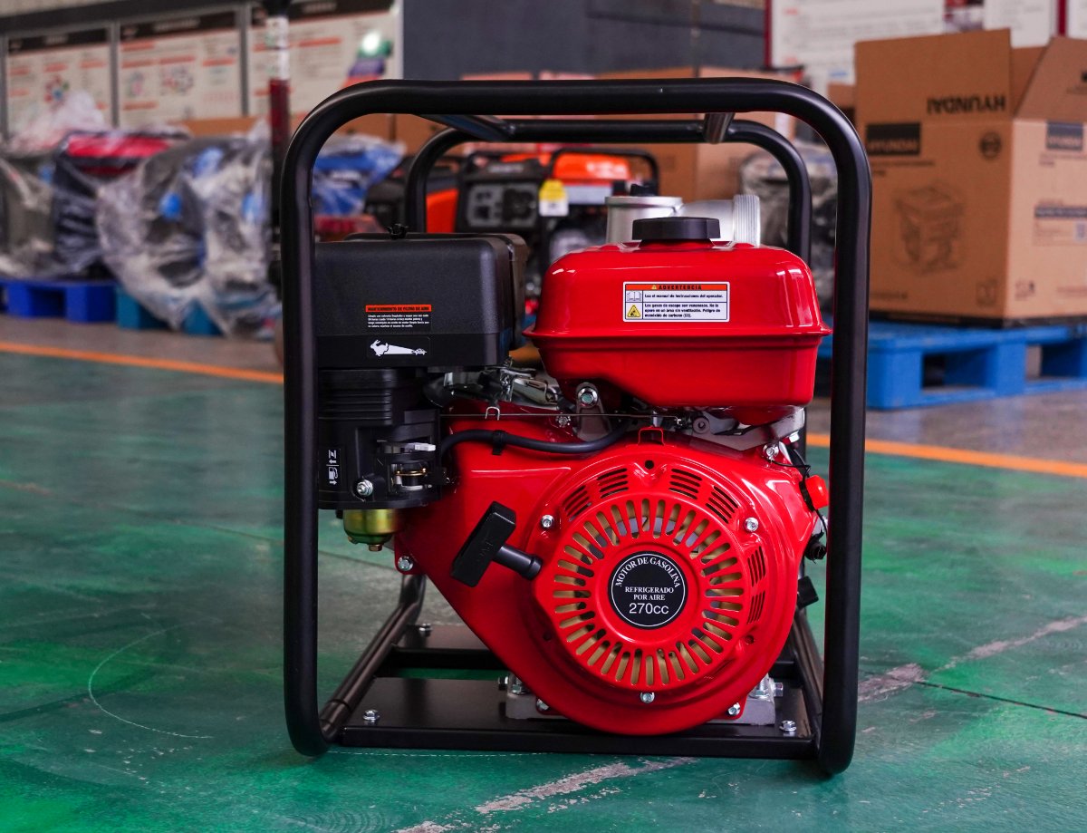 Motobomba de caudal autocebante de 4″ , 270 cc, 9 HP , columna de agua de 30 MCA, caudal de 96.000 Litros,succión de 8 Metros, tanque de combustible de 6 Litros