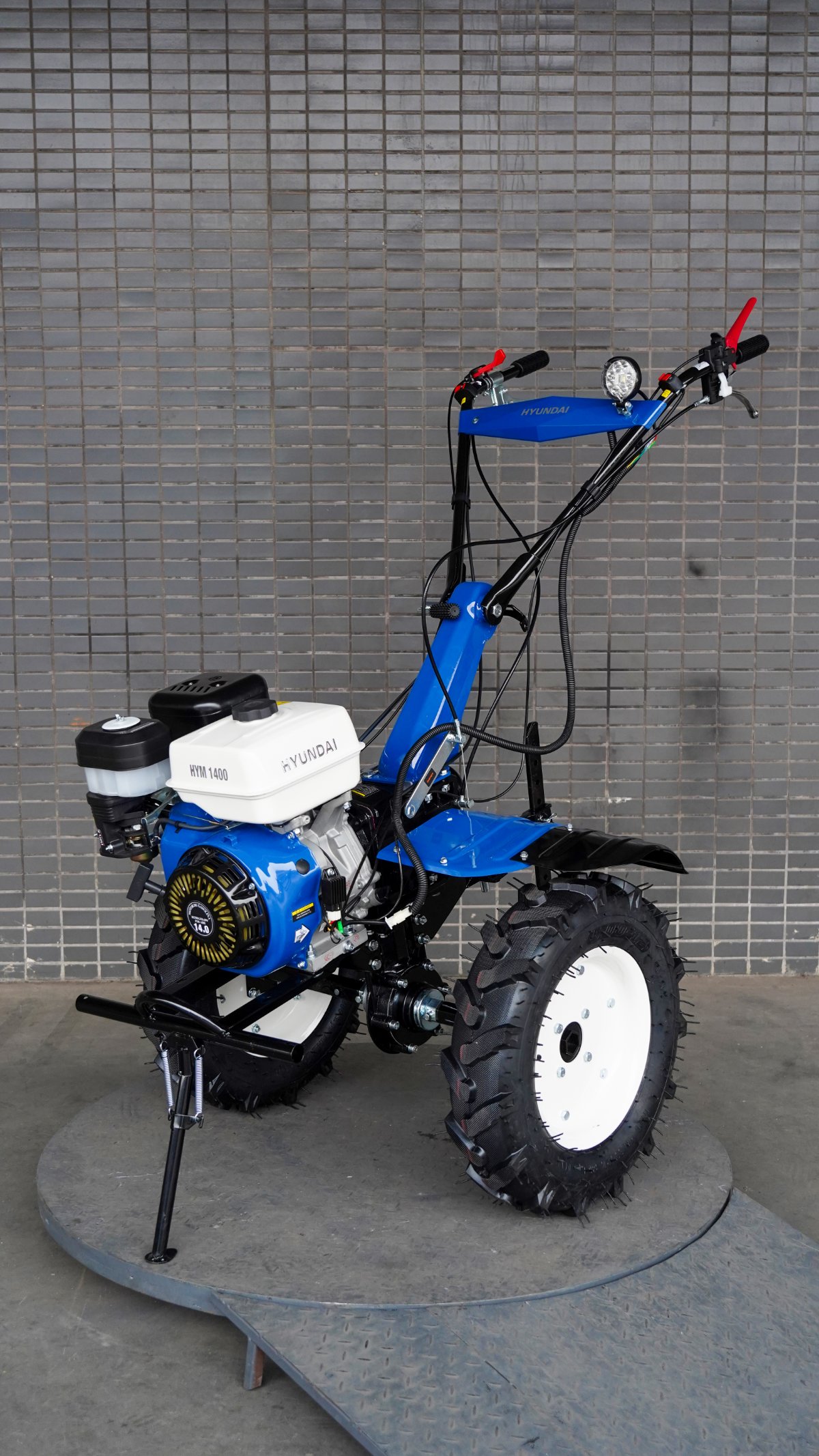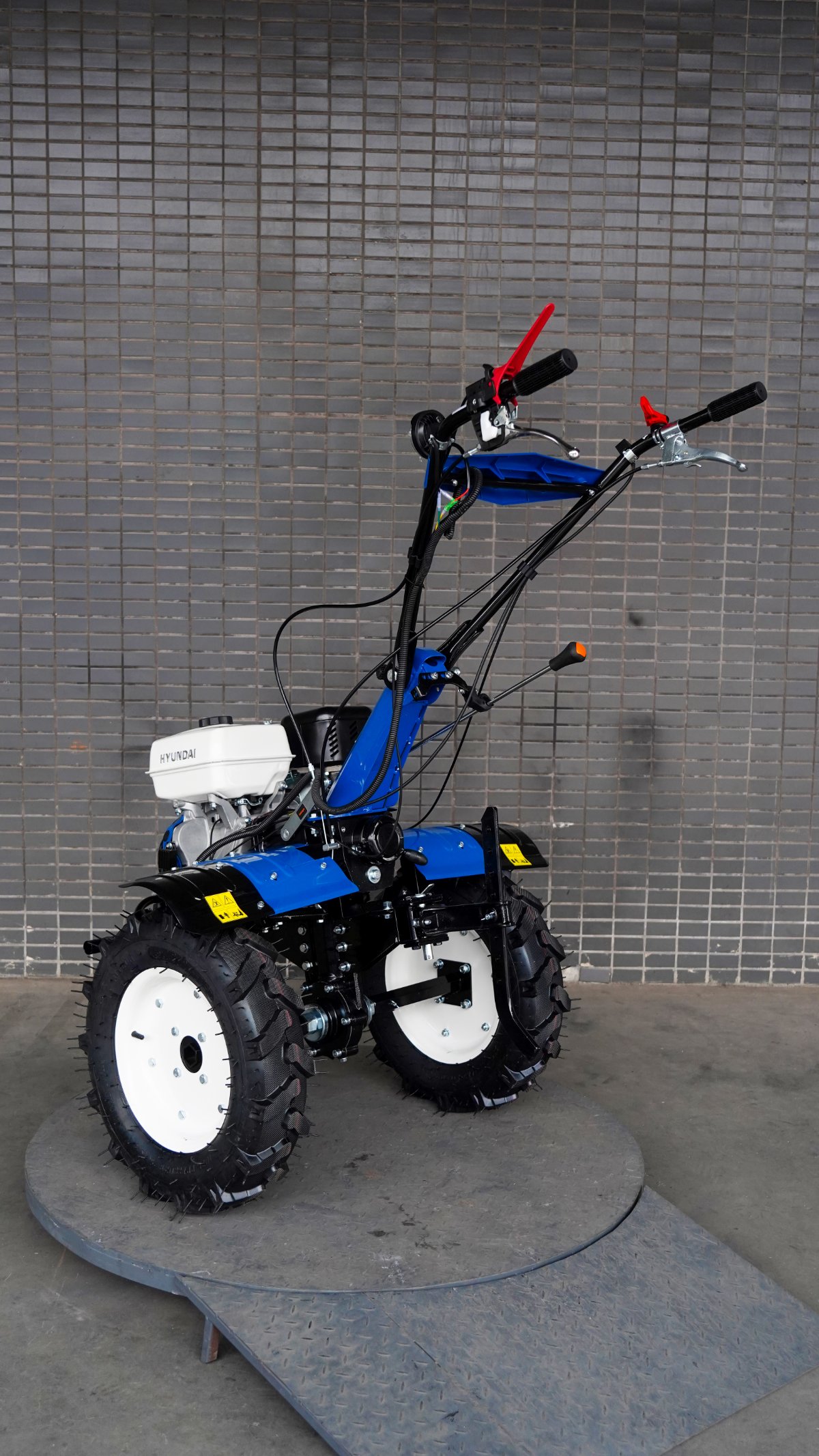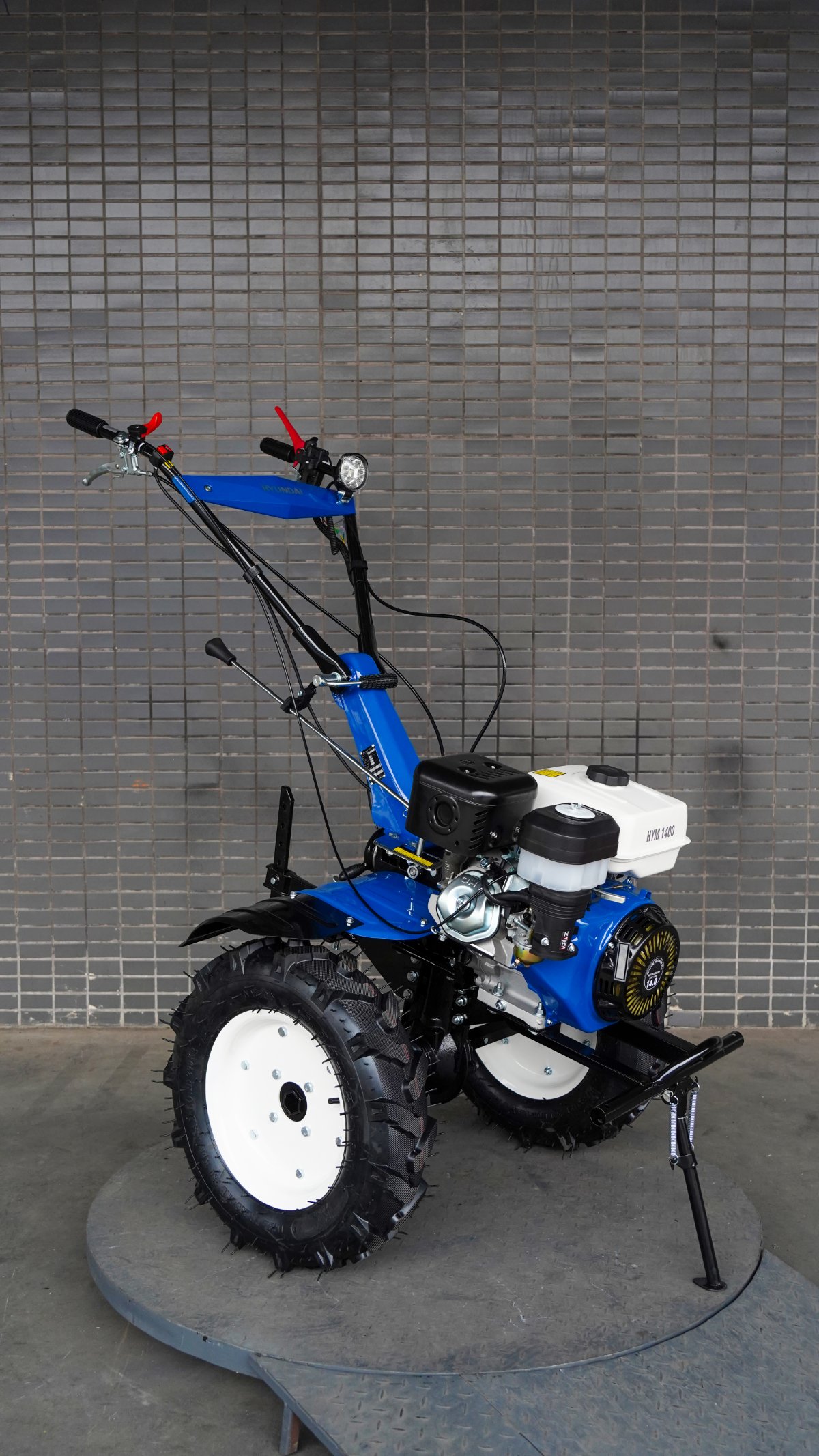 Motocultor de 4T, 458cc, 2 juegos de 10 cuchillas (140 mm), ancho 80 cm, profundidad 15–30 cm, tanque 6 L, arranque manual, 129 kg, con transmisión en acero forjado, filtro en baño de aceite y caja con 2 marchas + reversa.llantas de 5.00×12″,farol de luz LED