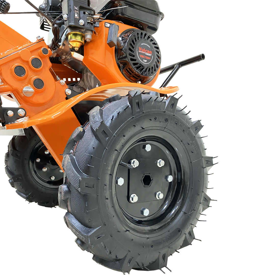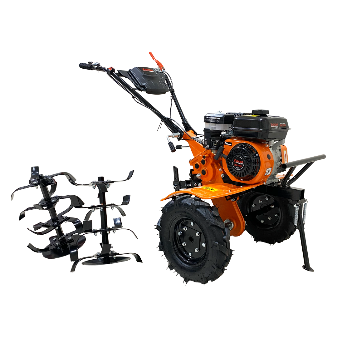 Tipo: Motocultor, Motor: 4 Tiempos, Cilindrada: 212 cc, Cuchillas: 2 juegos de 12 (15 cm), Ancho de trabajo: 80 cm, Profundidad: 15–30 cm, Tanque: 3 L, Arranque: Manual, Peso: 84 kg, Transmisión: Acero forjado, Filtro: Baño de aceite, Marchas: 2 adelante + reversa, Llantas: 4.00×8″