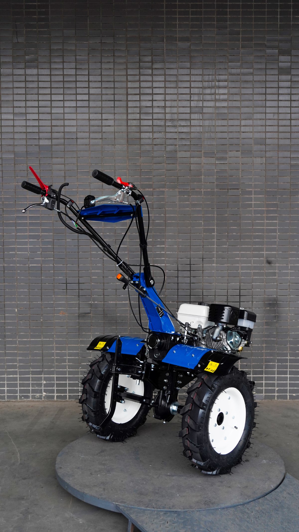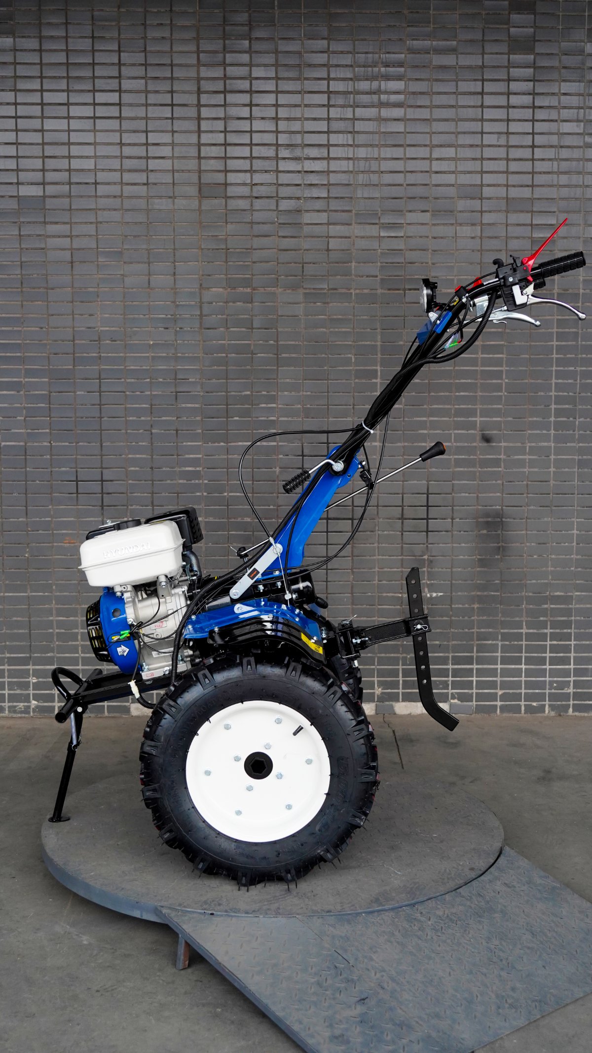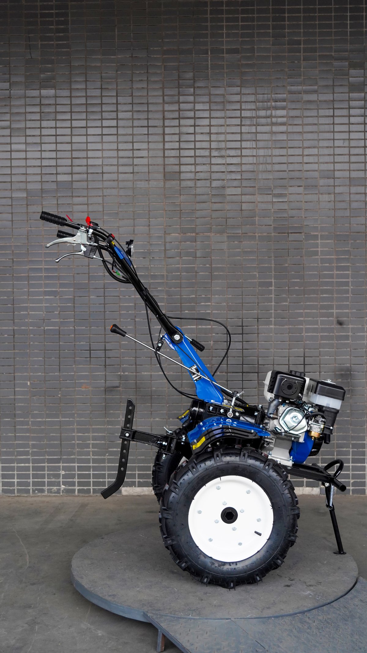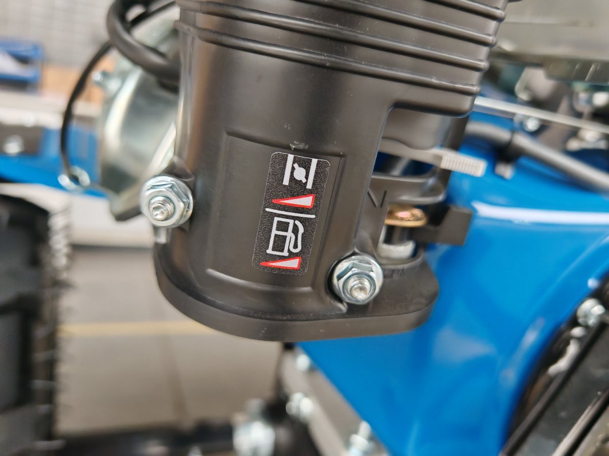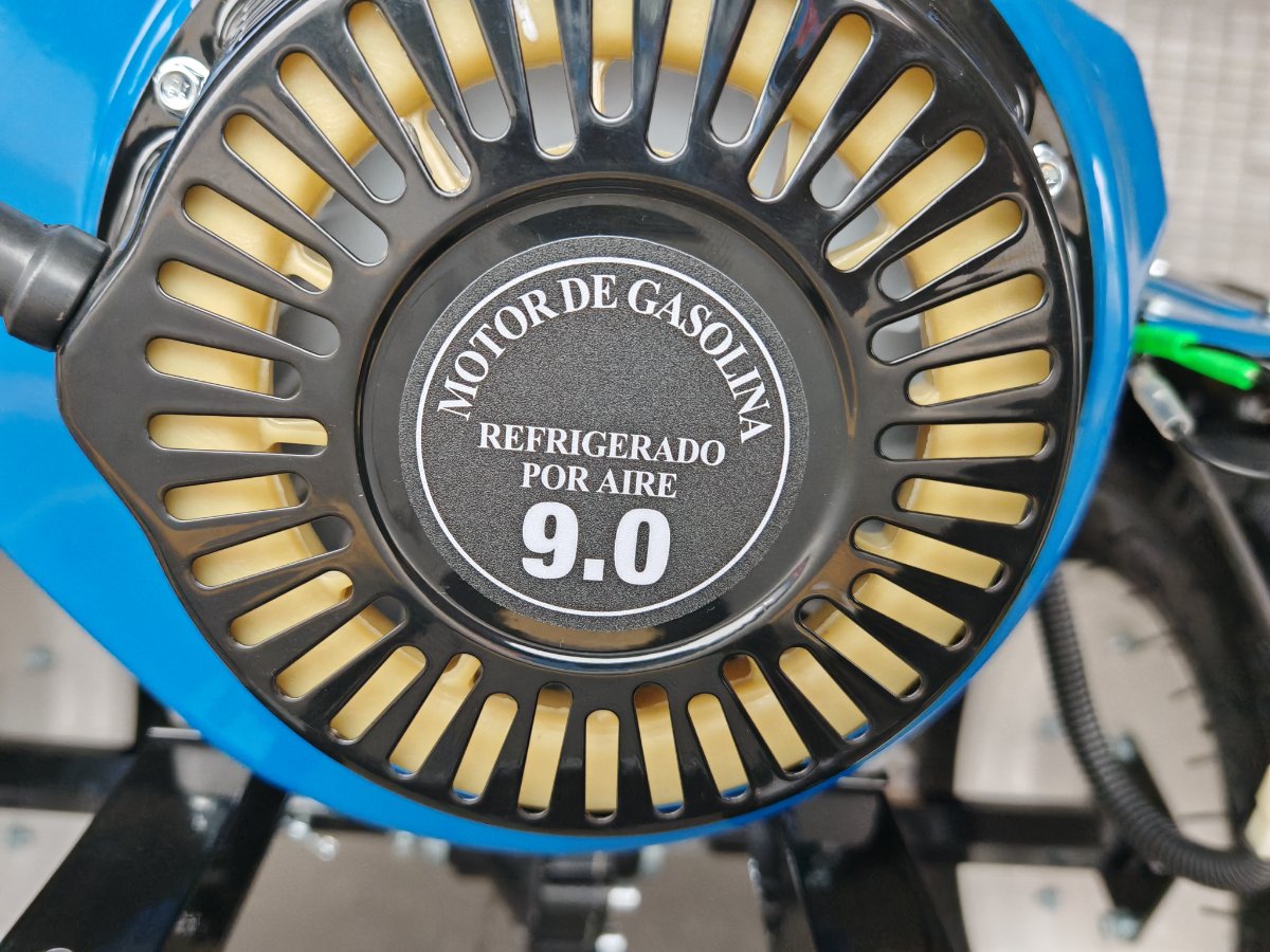 Motocultor de 4T, 212cc, 2 juegos de 10 cuchillas (140 mm), ancho 80 cm, profundidad 15–30 cm, tanque 6 L, arranque manual, 121 kg, con transmisión en acero forjado, filtro en baño de aceite y caja con 2 marchas + reversa.llantas de 5.00×12″,farol de luz LED